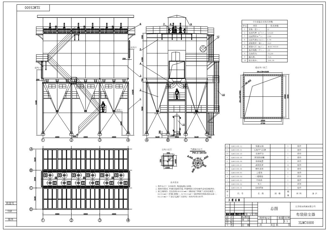 除塵器設置有濾袋檢漏裝置用于檢測濾袋狀況,并設置差壓、溫度、料位等在線監測裝置。